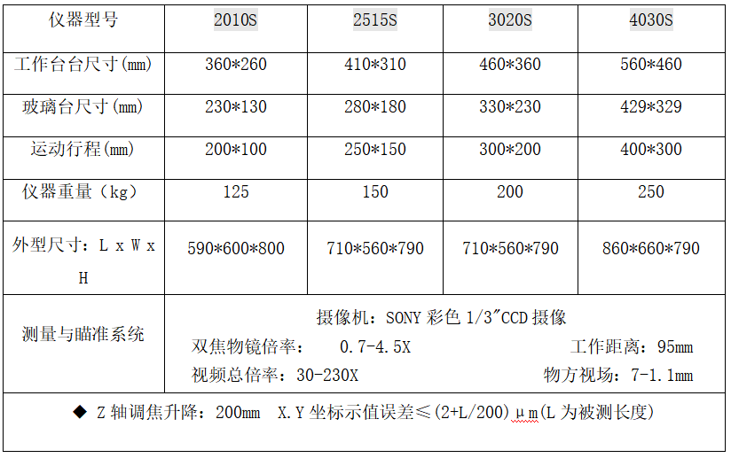 高精度二次元影像測量儀技術(shù)參數(shù):